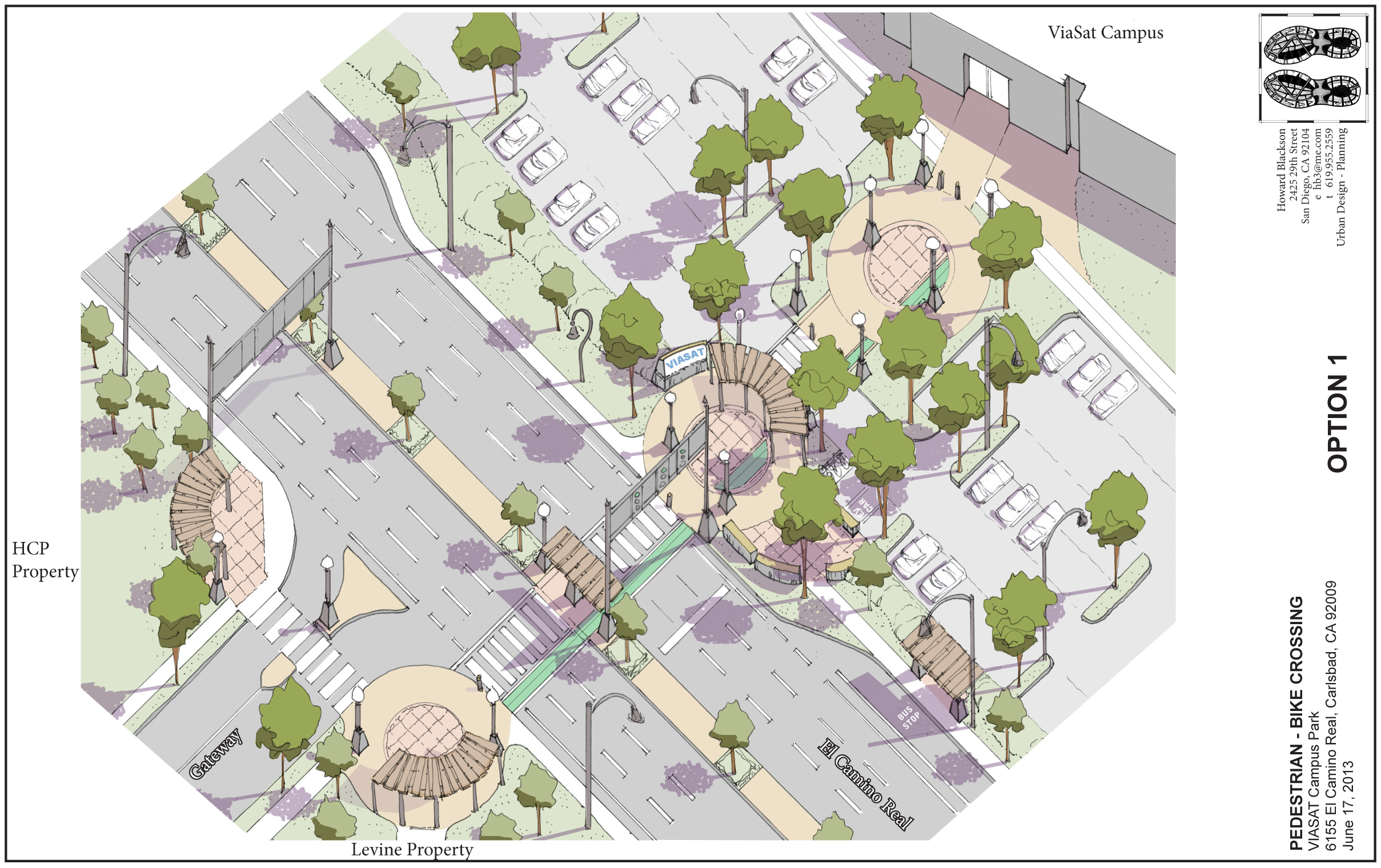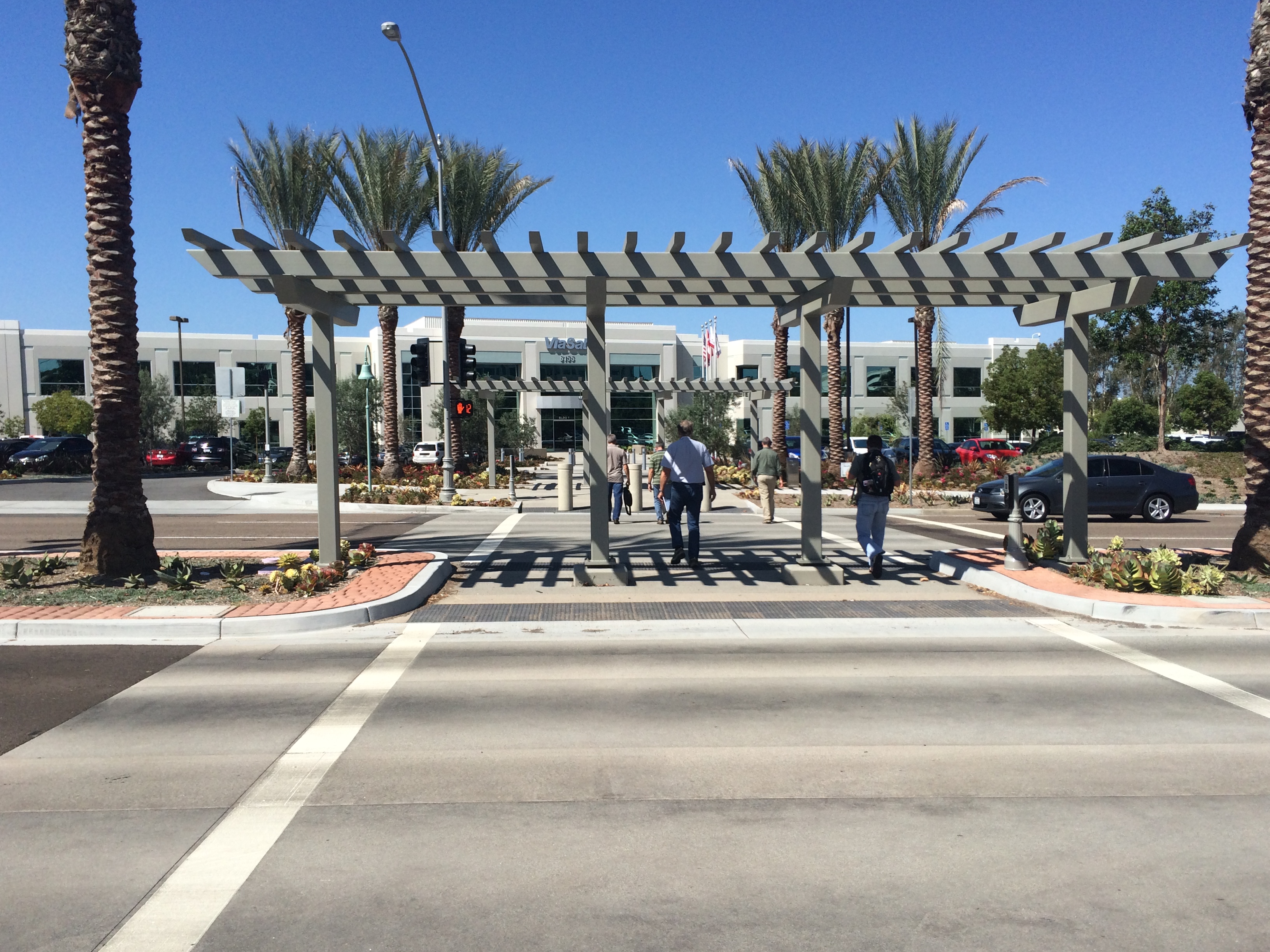 An idea in 2013 is now a reality today. The City of Carlsbad Transportation Director, Bryan Jones, asked for my assistance in getting ViaSat employees across one of the region’s most auto-oriented thoroughfare’s, El Camino Real, into a pedestrian and bicycle sharing friendly crosswalks.